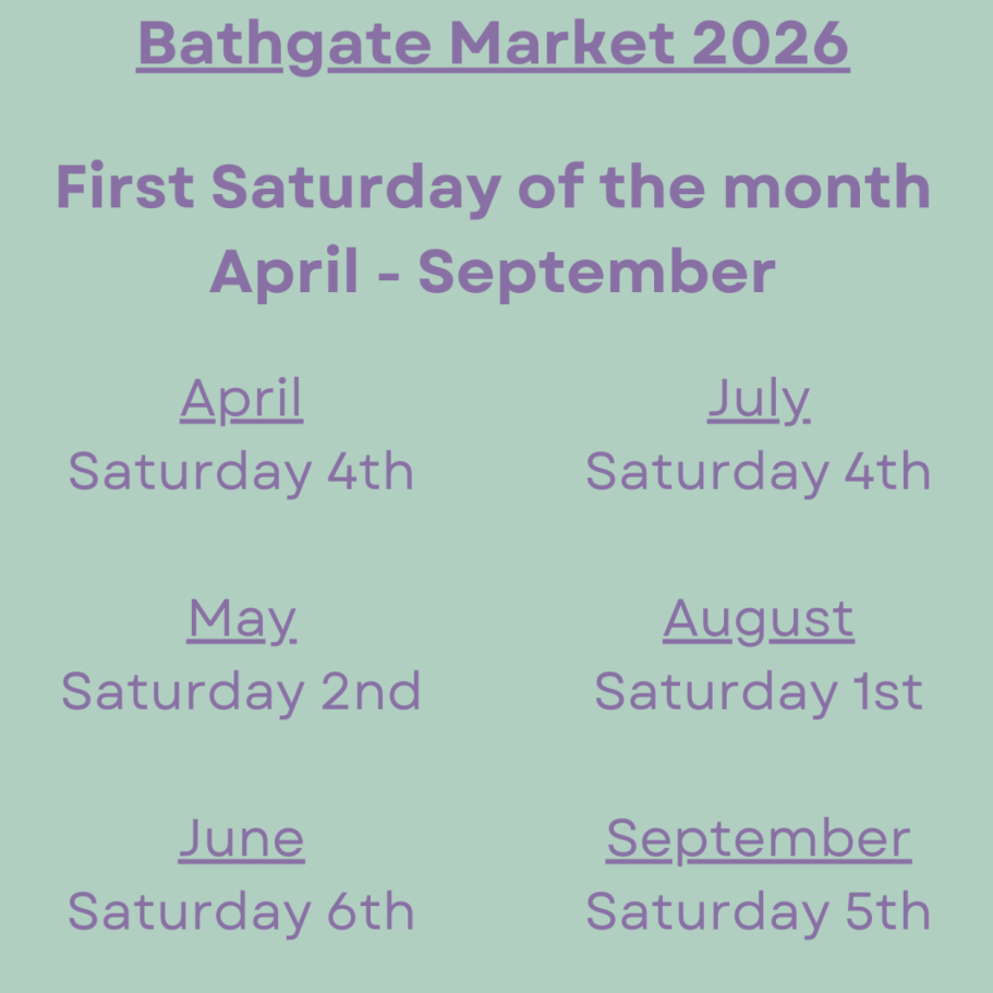 Bathgate Market Saturday’s 9am-2pm. (See dates below).